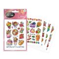 Ozdobte si své tělo krásným barevným tetováním. Vystřihněte vybraný obrázek. Přitiskněte ho na čistou a suchou pokožku Navlhčete ho vodou a po 30ti sekundách odstraňte papírek. Tetování lze odstranit mýdlem nebo olejíčkem. Vybrat si můžete z několika motivů oblíbených cukrovinek. Obsahuje 4 listy tetovaček.