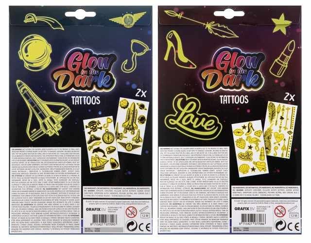 Tetování svítící ve tmě holky/kluci 2 ks aršíků s tetování.