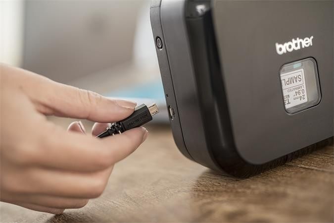 Malá tiskárna štítků bez klávesnice. Možnost tisku z celého bytu pomocí telefonu přes Bluetooth připojení. K počítači jej však můžete připojit i pomocí USB kabelu.