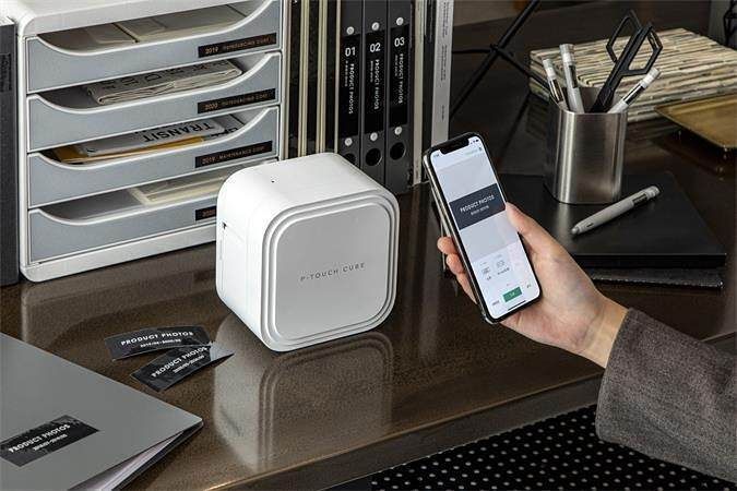 Malá tiskárna štítků bez klávesnice. Možnost tisku z celého bytu pomocí telefonu přes Bluetooth připojení. K počítači jej však můžete připojit i pomocí USB kabelu.