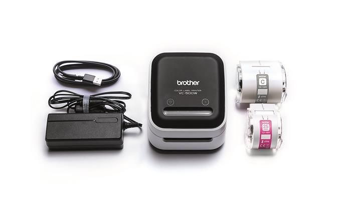 Kompaktní tiskárna štítků Brother VC-500W disponuje USB portem a integrovaným připojením k Wi-Fi pro snadné připojení. Nastavení designu štítků pro vás bude hračkou díky programu Brother P-touch Editor – například lze přidávat rámečky a importovat obrázky.