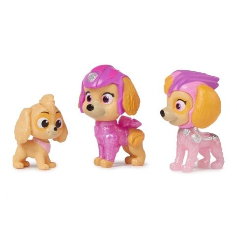 Užijte si doma tři generace své milované psí hrdinky Skye z Tlapkové patroly v této exkluzivní dárkové sadě figurek! Každá psí figurka je vyrobena v autentickém designu a stylu Tlapkové patroly, takže vypadá stejně jako ve filmech o Tlapkové patrole! Obsahuje akční figurku Skye z prvního filmu o Tlapkové patrole, figurku Mocného štěněte Skye z filmu Tlapková patrola: ve velkofilmu, a zbrusu novou figurku Baby Skye! Tato velmi žádaná dárková sada je nepostradatelným doplňkem pro každého sběratele hraček s tematikou Tlapkové patroly a pro spoustu fanoušků seriálu! Pro ještě zábavnější a napínavější mise inspirované seriálem Tlapková patrola sbírejte všechny hračky z filmů o Tlapkové patrole, jako je například úžasná velitelská letadlová loď, a všechny hračky ze speciální edice Tlapkové patroly pro holky a kluky, jako jsou figurky a hrací sady Mighty Pups, Aqua Pups a Big Truck Pups (každá se prodává samostatně)! S hračkami ze světa Tlapkové patroly může dítě při hraní rozvíjet svou představivost a motorické dovednosti a zároveň prožívat své oblíbené scény z filmu! Užijte si nekonečná dobrodružství se svým oblíbeným psím hrdinou s touto exkluzivní sadou figurek Skye z filmu Tlapková patrola: ve velkofilmu!
