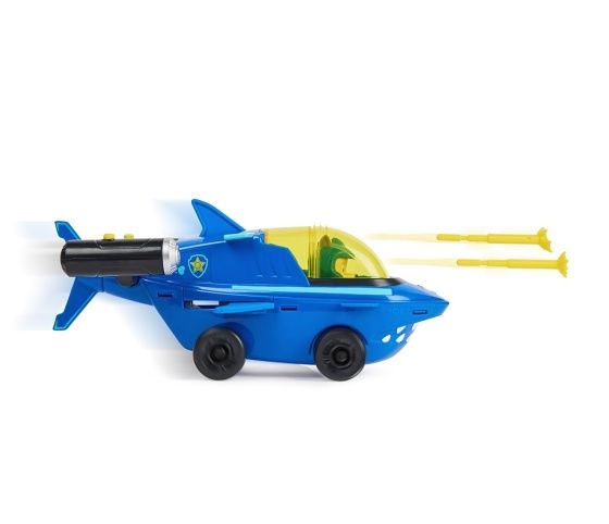 Chase v žraločím záchranářském autíčku pro vodní štěňátka. Umísti Chase do kokpitu autíčka a aktivuj záchranářský režim. Vlož střely do odpalovacích zařízení a stisknutím tlačítek je vystřel. Vhodné od 3 let.