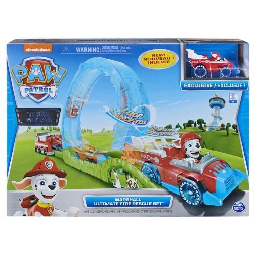 Uhas oheň a zachraň den s Marshallem z Tlapkové Patroly a jeho Hasičskou dráhou pro 1:55 Kovová autíčka Tlapkové patroly (prodávána samostatně). Set obsahuje exkluzivní Marshallovo kovové vozidlo a odnímatelnou odpalovací rampu. Nalož svoje exkluzivní autíčko do náklaďáku, bouchnutím do rampy vyšli Marshalla do akce – Marshallovo autíčko projede kolem vody a uhasí oheň na druhé straně dráhy. Pak jednoduše zvedni plameny a můžeš zkoušet záchrannou misi znovu a znovu. Odpoj odpalovací dráhu z hracího setu a můžeš se projíždět velkým autem s funkčními koly. Pro ještě více zábavy nasbírej všechna kovová autíčka Tlapkové Patroly. Hasičská dráha pro autíčka je skvělým dárkem pro děti od 3 let. Se sestavením je potřeba pomoc od dospěláka. Obsahuje: 1 Hrací sadu, 1 Odnímatelnou odpalovací rampu, 1 Exkluzivní kovové autíčko, 1 Arch s nálepkami, 1 Instrukce