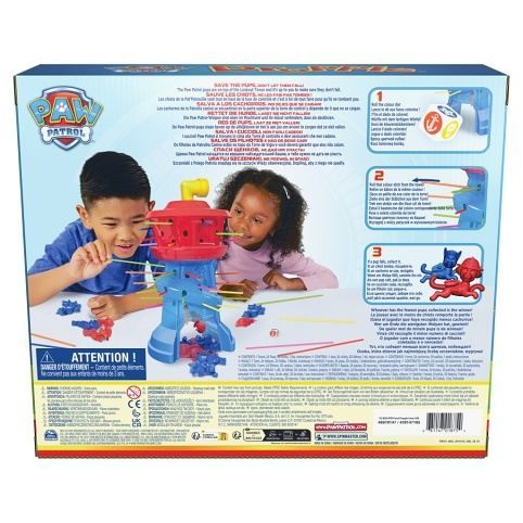 Zabraňte štěňatům z Tlapkové patroly spadnout v této zábavné variaci klasické hry! Začněte tím, že náhodně zasunete tyčinky do hlídkovací věže Tlapkové patroly a pak přisypete figurky štěňat. Opatrně se střídejte ve vytahování tyčinek, aniž byste nechali některé ze štěňat uvnitř spadnout – pokud se tak přece jen stane, přidejte je na svou hromádku. Jakmile jsou všechny tyčinky vytažené, vyhrává hráč s nejmenším počtem nasbíraných štěňat! Spin Master přináší dětem zábavu na doma. Nabízí řadu deskovek a dětských hraček a her, včetně těch pro nejmenší či pro dívky. Sbírejte své oblíbené plyšáky, fidget hračky, auta na dálkové ovládání, akční figurky, panenky, doplňky a další. Díky našemu rozmanitému katalogu si snadno poradíte s výběrem originálních dárků, od těch pro muže až po hračky pro děti a batolata. Pokud jste se stále dostatečně nenabažili, prozkoumejte dětské hry, hračky do bazénu, venkovní hry a monster trucky pro každé roční období. Buďte při hraní kreativní, postavte si hračky a auta na dálkové ovládání a přeneste akci ke stolu s puzzlemi pro dospělé nebo karetními hrami. Roztočte to se Spin Master ještě dnes!