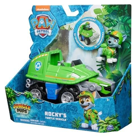 Rockyho vozidlo vozidlo se dokáže transformovat do záchranného režimu stlačením předku vozidla, aby se odhalil želví zobák. Poté vytáhněte ocas ze zadní části vozidla, a následně otevřete želví tlamu, abyste dokončili transformaci! Použijte jeho ocas a zobák k zlikvidování všech překážek a zachraňte situaci! Pro ještě zábavnější a napínavější mise inspirované seriálem Tlapková patrola posbírejte všechny hračky: Tlapky z džungle a Tlapková patrola ve velkofilmu, jako například úžasné velitelství letadlové lodi a všechny speciální edice hraček, figurek, hracích sad Tlapkové patroly pro dívky a chlapce: Mocné Tlapky, Vodní Tlapky a velká vozidla (každé se prodává zvlášť) S předškolními hračkami Tlapkové patroly může dítě zapojit svou představivost a rozvíjet své motorické dovednosti hraním si, zatímco prožívají oblíbené momenty ze seriálů. Užijte si nekonečná tlapkózní dobrodružství s Rockym a jeho želvím vozidlem Tlapek z džungle!
