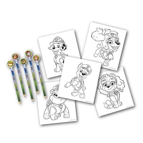 Sada obsahuje 32 omalovánek štěňátek Tlapkové Patroly. Sada obsahuje 6 pastelek a 6 gum.