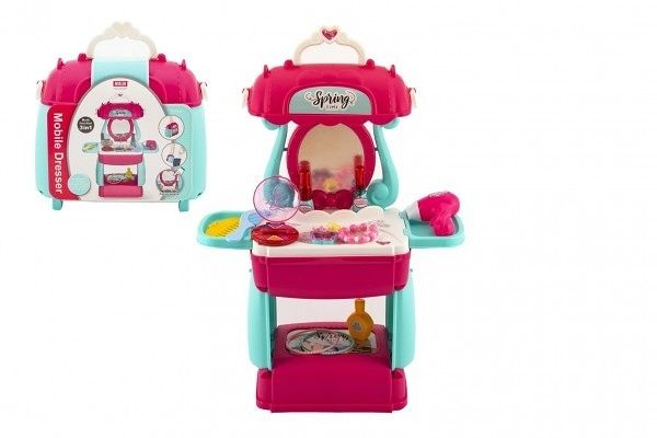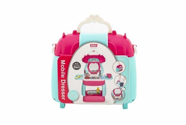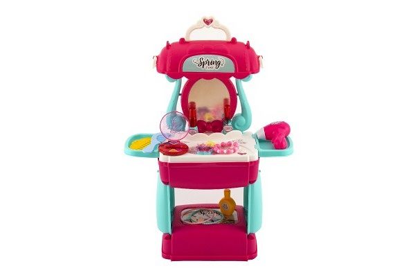 Toaletní stolek nesmí chybět v pokojíčku žádné holčičky, která se ráda maluje. Toaletní stolek je přenosný a jde velmi lehce složit do kufříku. Také lze přidat popruh a z toaletního stolku se stane kabelka. Balení obsahuje 26 ks doplňků jako je fén, hřeben, kosmetické pomůcky atp. Vše je vyrobeno z kvalitního a odolného plastu.