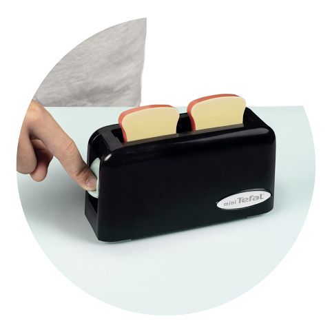 Věrná replika toustovače mini Tefal automaticky vysune tousty: jednoduše vložte toustové plátky do toustovače a stiskněte spínač. Toasty se vysouvají mechanicky, bez baterie. Rozměry (DxŠxV): 15 x 5,5 x 7,8 cm.