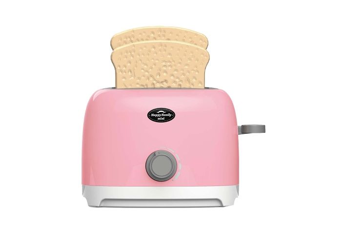 Topinkovač. Velikost 18x9,5x16 cm. Po stlačení páčky na boku se topinky zasunou dolů, otočením kolečka se spustí časovač a začne tikat, po uplynutí času topinky vyskočí.