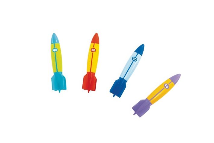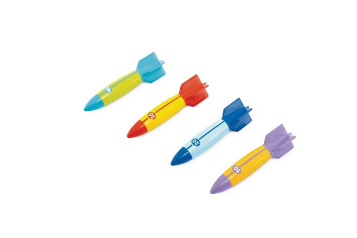 Torpéda pro potápění jsou navržena jako zábavné a barevné hračky určené k vrhání pod vodou. Každé torpédo má aerodynamický tvar, který napomáhá hladkému sklouznutí pod hladinou až do vzdálenosti 6 metrů. Sada obsahuje čtyři kusy, přičemž každé z nich je odlišeno kombinací veselých barev a číslem, které pravděpodobně označuje dosaženou vzdálenost – například fialové torpédo s označením 10, modré s číslem 20, červené 30 a zelenomodré 40. Tento barevný systém usnadňuje rozlišení jednotlivých torpéd při společné hře. Hračky jsou vyrobeny z měkkého, ale pevného materiálu, což zajišťuje bezpečnost při používání dětmi. Torpéda jsou opatřena stabilním úchytem ve tvaru křídel, které usnadňují jejich držení a přesné vystřelení pod vodou. Díky tomuto designu mají děti lepší kontrolu nad směrem a vzdáleností hodu, což zvyšuje zábavnost a soutěživost při potápěčských hrách. Tato sada je určena především pro děti od 6 let, které si chtějí zpestřit čas strávený u vody, například v bazénu nebo na koupališti. Torpéda jsou součástí kategorie venkovních letních sportovních hraček, vhodných pro skupinovou zábavu s kamarády. Jejich barevnost a jednoduché ovládání podporují aktivní pohyb a rozvoj koordinace očí a rukou. Celkově torpéda pro potápění představují praktickou a zábavnou pomůcku pro letní hry ve vodě, která kombinuje bezpečnost, snadné použití a esteticky přitažlivý design. Jsou ideální volbou pro děti, které chtějí soutěžit ve vzdálenosti vrhu pod hladinou a zároveň si užít radost z pohybu ve vodě.