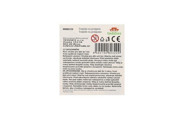 Vhodné pro zpestření plaveckého a potápěčského výcviku nebo využití v domácím bazénu. Velikost torpéda 13 cm.