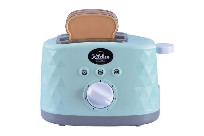 Na toustovači můžeš nastavit stupeň teploty, opékání spustíš stlačením přepínače na pravé straně. Celá příprava toustíků bude také doprovázena zvukovými efekty!