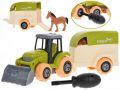 Traktor 26cm šroubovací volný chod s přívěsem a koněm v krabičce