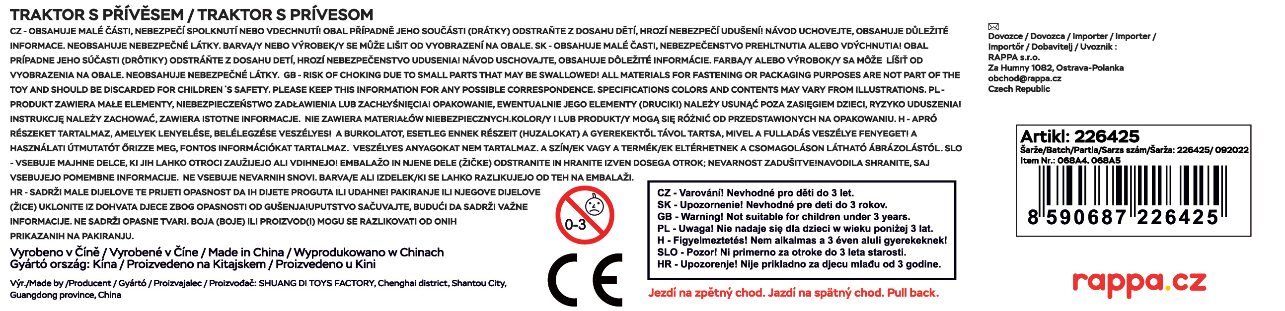 Moderní traktor s vlečkou, hračka z kolekce Moje malá farma. Nepostradatelný pomocník pro každého malého farmáře! Vlečku můžeš jednoduše odpojit a traktor využít k dalším pracím. Traktor jezdí na zpětný setrvačník a jeho délka včetně vlečky je 18 cm. K výběru 4 druhy.