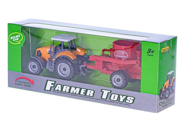 Traktor kov 19cm s přívěsem volný chod, 3 barvy