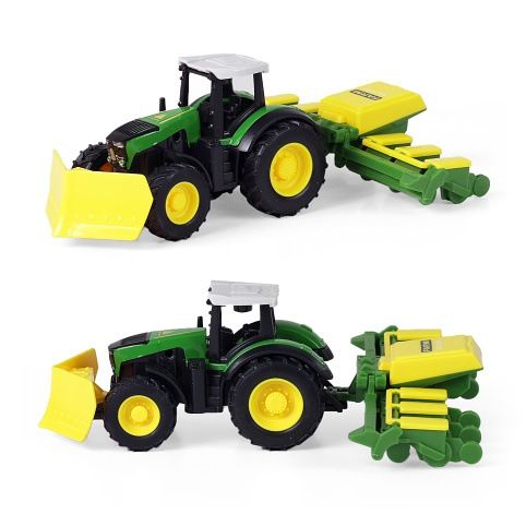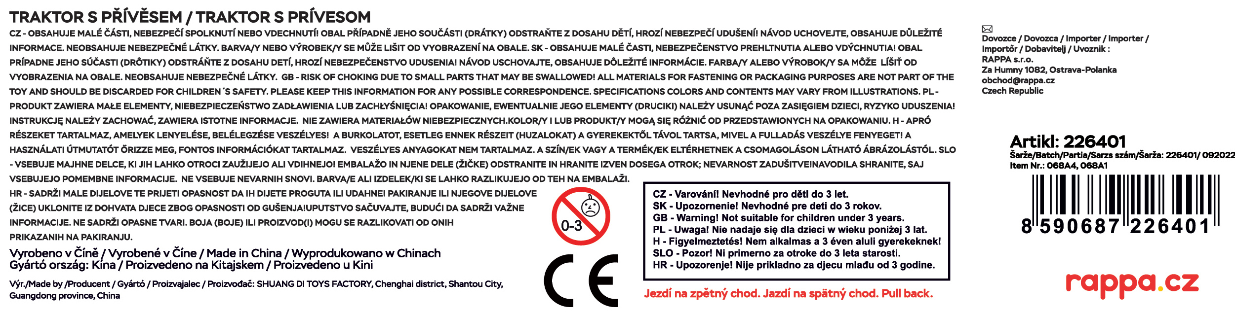 Moderní traktor s vlečkou, hračka z kolekce Moje malá farma. Nepostradatelný pomocník pro každého malého farmáře! Vlečku můžeš jednoduše odpojit a traktor využít k dalším pracím. Traktor jezdí na zpětný setrvačník a jeho délka včetně vlečky je cca 18 cm. K výběru 4 druhy.