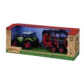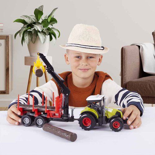 Moderní plastový traktor s vlečkou na dřevo, hračka z kolekce Moje malá farma. Nepostradatelný pomocník pro každého malého farmáře! Vlečku můžeš odpojit a traktor využít k dalším pracím. Traktor jezdí na setrvačník a jeho délka včetně přívěsu je 37 cm. Zmáčknutím tlačítek traktor vydává reálné zvuky. Traktor vyžaduje 3 ks baterií typu AG13/LR44, které jsou součástí balení.