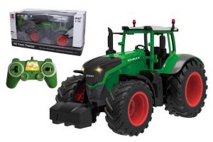 Traktor na dálkové ovládání. Velikost 38 cm. Frekvence 2.4 GHz. Tlačítka na ovladači - levé horní - on/off, pravé horní - klakson, spodní - demo funkce. USB kabel součástí. Světelné a zvukové efekty. Bateriový pack 4.8V 300mAh pro traktor součástí, 2xAA pro ovladač nejsou součástí.