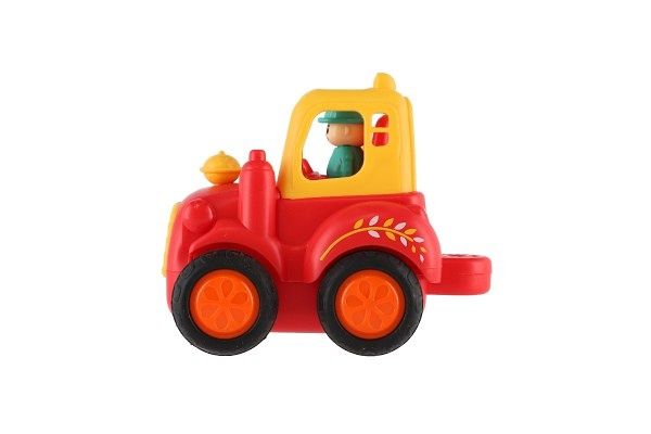 Traktor s panáčkem na setrvačník plast 9x7cm 4 barvy