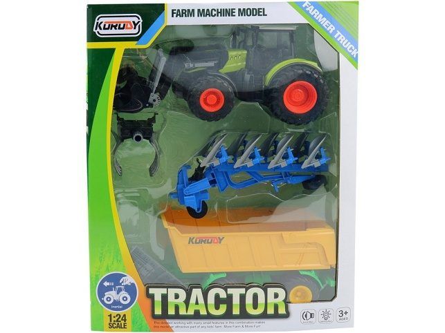 Traktor s příslušenstvím, na baterie, světlo, zvuk, 26 + 23 cm