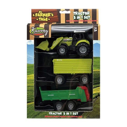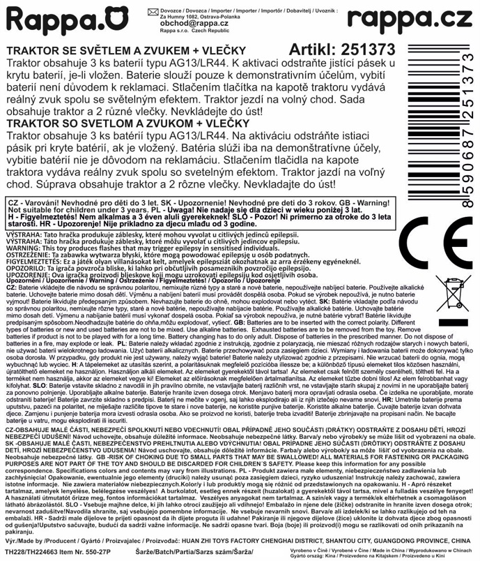 Připravte se na pořádnou jízdu na farmě! Tento parádní traktor se světelnými a zvukovými efekty potěší každého malého farmáře. Díky volnému chodu je snadno ovladatelný – stačí ho postrčit a vyrazí vpřed. Součástí balení jsou dvě odpojitelné vlečky, které lze zapojit za traktor a převážet vše, co je na statku potřeba. Pro světelný a zvukový efekt je potřeba 3 ks baterií typu AG13, které jsou uvnitř výrobku.