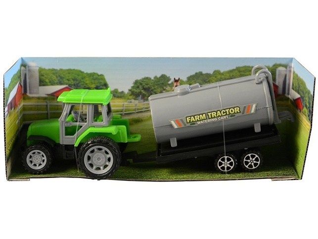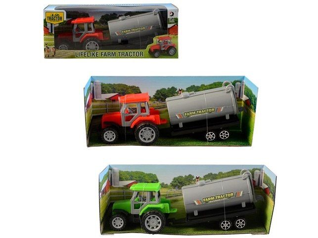 Traktor s přívěsem, na setrvačník , 22 cm. Na výběr je ze dvou barev. Hračka je určena pro děti 3+. Rozměr hračky je 6 x 22 x 6 cm. Materiál hračky je plast. Balení hračky je box.