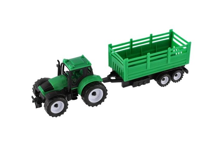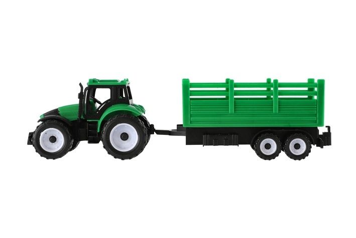Traktor s přívěsem plast 28cm 2 barvy v krabičce