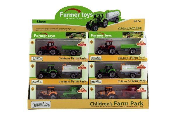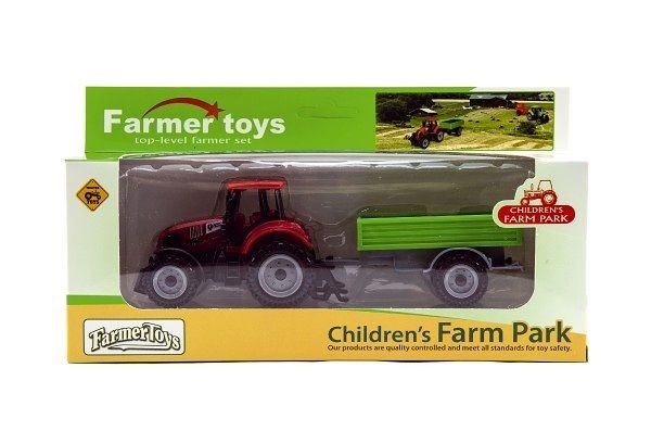 Traktor s přívěsem plast/kov 19cm 3 druhy na volný chod v krabičce 25x13x5,5cm