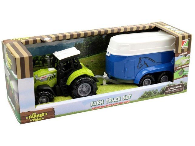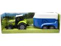 Traktor s přívěsem pro koně, se světlem a zvukem, volná kola, 23,5 x 6 x 6 cm