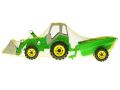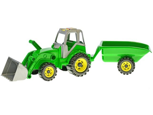 Traktory jsou bezesporu jedny z nejoblíbenějších hraček. Traktor s vlečkou a nakladačem je o velikosti 60 cm. Je vhodný na hru doma i venku. Dostupné jsou 3 barvy - oranžová, zelená, modrá. Vhodné pro děti od 3 let.