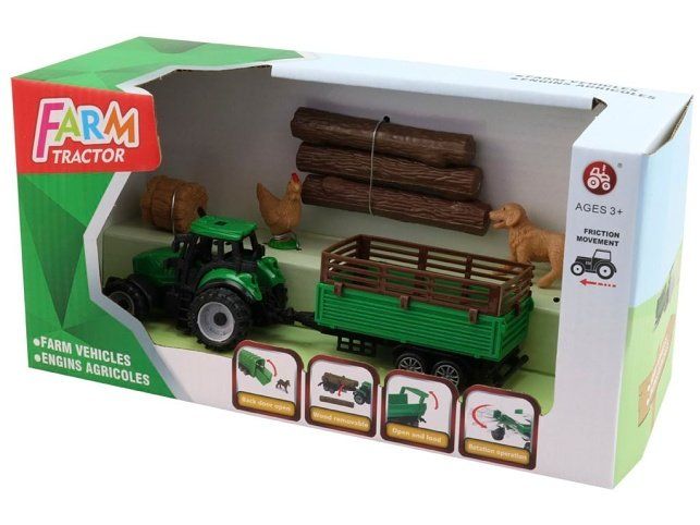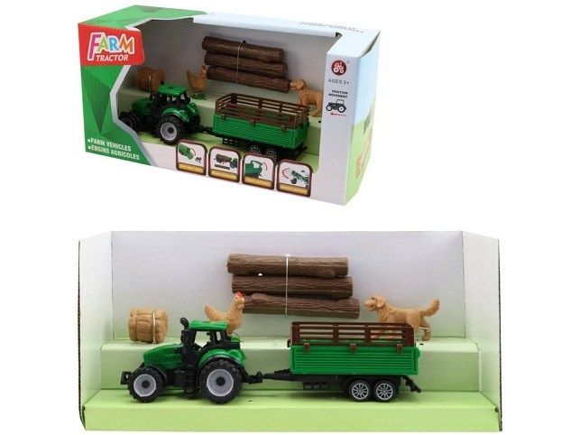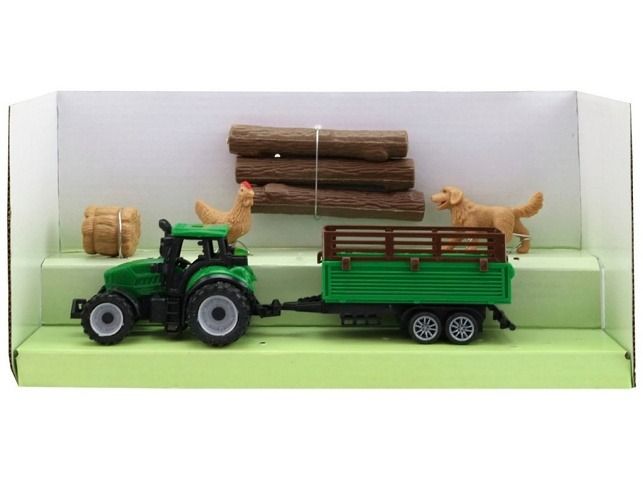 Traktor s vlečkou a příslušenstvím, 18 x 3,5 x 4 cm