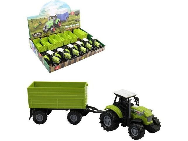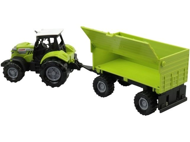 Traktor s vlečkou, se světlem a zvukem, volná kola, 23,5 x 6 x 6 cm