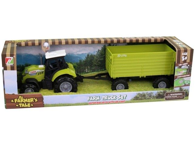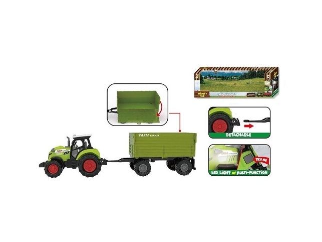 Traktor s vlečkou, se světlem a zvukem, volná kola, 26 x 6 x 6 cm