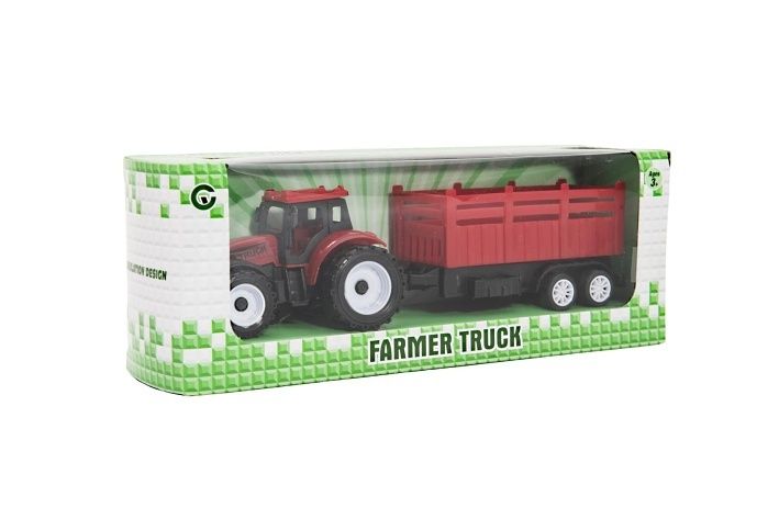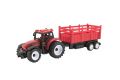 Traktor s vlekem plast 21cm na volný chod 2 barvy v krabičce 23x9x6cm