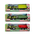 Traktor s vlekem plast 24cm na volný chod na baterie se světlem, zvukem 3 druhy v krabici