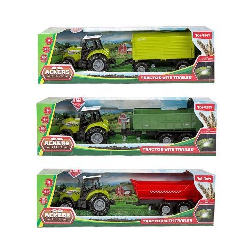 Skvělá hračka pro všechny malé farmáře! Tento detailně zpracovaný traktor s vlekem je vybaven světelnými a zvukovými efekty, které přidávají hře realistický nádech. Traktor funguje na volný chod a je poháněn bateriemi, které umožňují snadný pohyb na různém povrchu. Tato hračka je ideální pro rozvoj dětské fantazie, motorických dovedností a sociálních interakcí při hře na farmu.