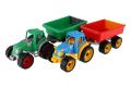 Traktor s vlekem plast 53cm na volný chod 2 barvy v síťce