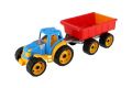 Traktor s vlekem plast 53cm na volný chod 2 barvy v síťce