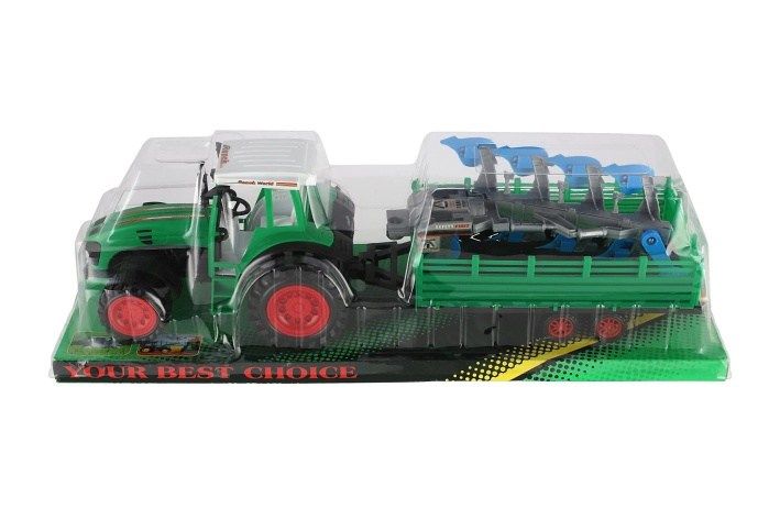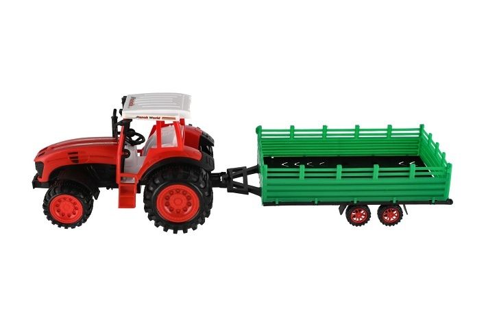 Pro každého malého zemědělce je nepostradatelným, všestranným pomocníkem traktor s vlekem. Traktor je na setrvačník a je velikosti 53 cm. Nekonečná práce na farmě může začít. Vlek je možné odpojit.