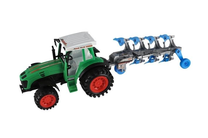 Traktor s vlekem s pluhem plast 53cm na setrvačník 2 barvy v blistru