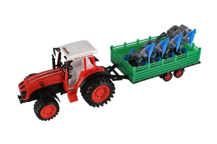 Pro každého malého zemědělce je nepostradatelným, všestranným pomocníkem traktor s vlekem. Traktor je na setrvačník a je velikosti 53 cm. Nekonečná práce na farmě může začít. Vlek je možné odpojit.