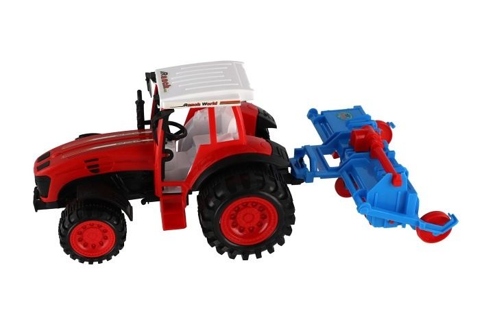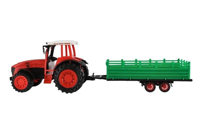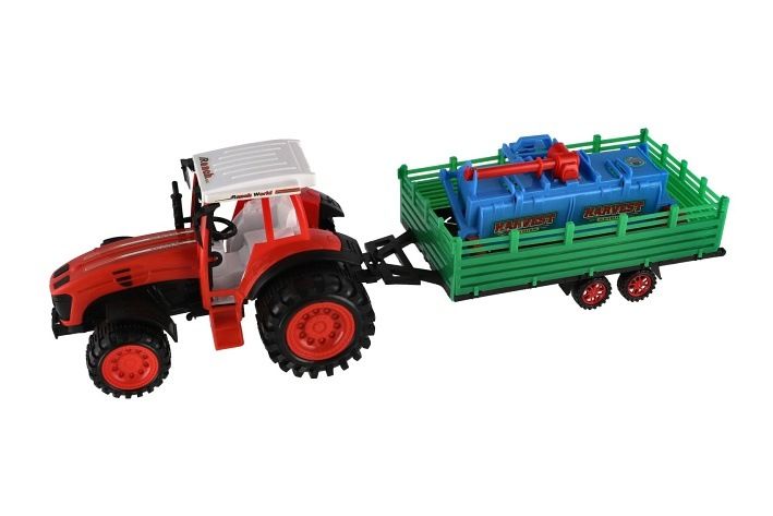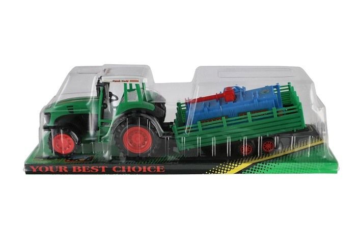 Traktor s vlekem s rotavátorem plast 52cm na setrvačník 2 barvy v blistru
