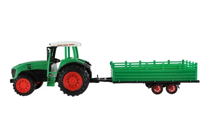 Pro každého malého zemědělce je nepostradatelným, všestranným pomocníkem traktor s přívěsem. Traktor je na setrvačník a je velikosti 52 cm. Nekonečná práce na farmě může začít. Vlek s rotavatorem je možné odpojit.