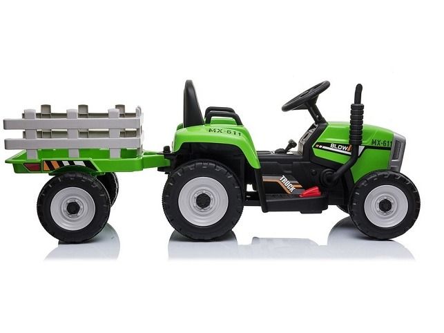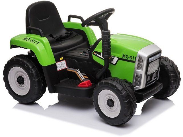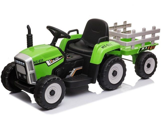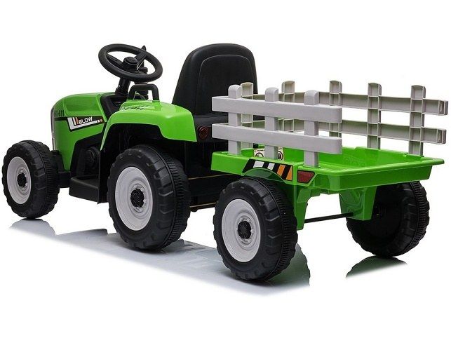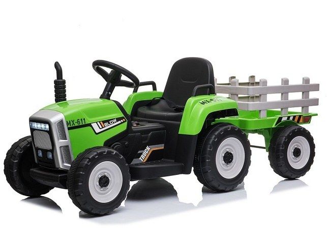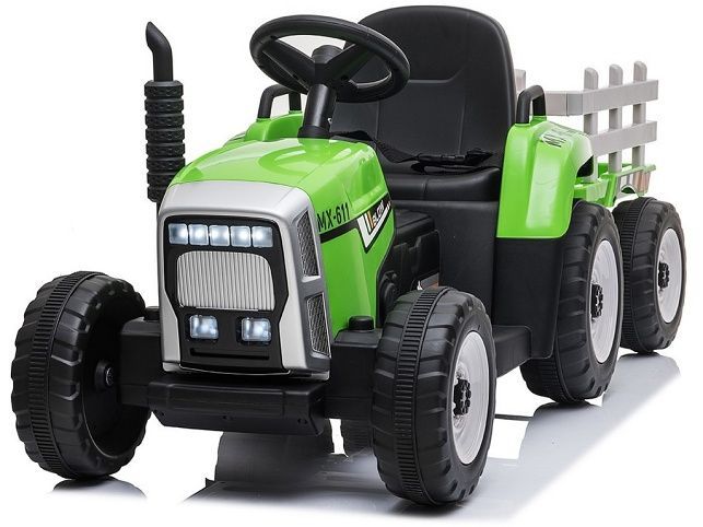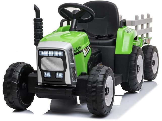 Elektrický traktor s vozíkem. Dětský elektrický traktor s nabíjecím akumulátorem o hodnotě 12 V/4,5 Ah. Nabíjecí doba se pohybuje mezi 8 - 12 hodinami. Po nabití jezdí traktor 1 - 2 hodiny podle způsobu jízdy. Traktor obsahuje dva motory. Režim jízdy je možný vpřed a vzad. Traktor má plastová kola, která zajistí komfortní jízdu. Předností je výbava multifunkčního zvukového panelu s hudbou (MP3/USB/FM). Na panelu je možné volit i hlasitost a kontrolovat stav baterie. Součástí je návod + nabíječka a samotná baterie. Klíčové vlastnosti:- 2 motory- Jízda vpřed i vzad- Světla- Hudba (MP3/USB/FM)- lndikátor stavu baterie- Bez dálkového ovládáníTechnické parametry:- 2 motory- Rychlost: 3 - 8 km/h- Baterie: 12 V/4,5 Ah- Rozměry s vozíkem: 136,5 x 50 x 52,5 cm- Nosnost: max. 30 kg- Doba nabíjení: 8 - 12 hodin- Nabíječka: 12 V/500 mA- Životnost baterie: 300 cyklu- Doba jízdy: 1 - 2 hod. - Věk: 3+