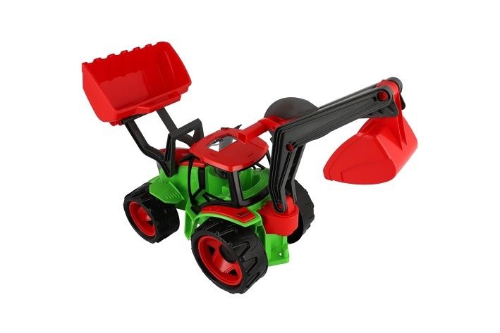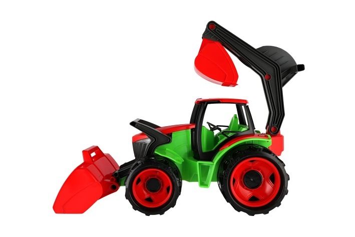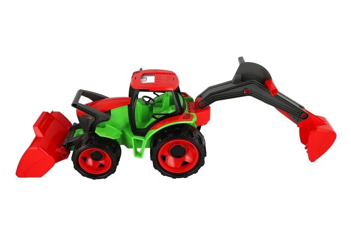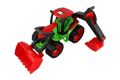Traktor se lžící a bagrem plast zeleno-červený 65cm v krabici od 3 let
