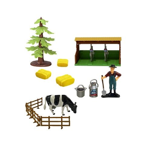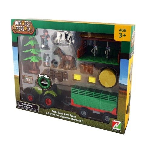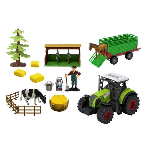 Velký farmářský plastový traktor s vlečkou na seno a příslušenstvím. Tento set je důležitým pomocníkem pro každého malého hospodáře. Zmáčknutím některého z tlačítek na střeše, traktor vydává reálné zvuky a bliká. Funguje na 3 ks baterií typu AG13/LR44, které jsou součástí balení.
