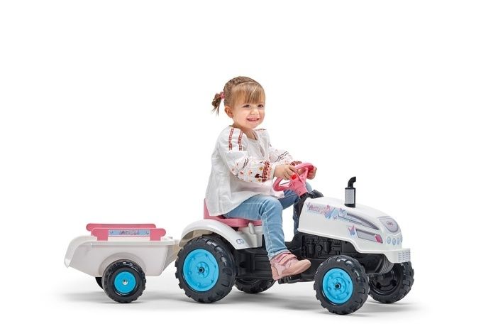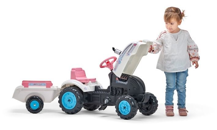 Traktor šlapací Butterfly Farmer s valníkem, odklápěcí kapotou,komínem, volantem a klaksonem. Z vysoce odolného a kvalitního plastu.Velikost 138×53×42 cm. Věk 2+. Všechny traktory Falk jsou testovány na 30kg – dle požadavků evropských norem. Vyrobeno ve Francii.