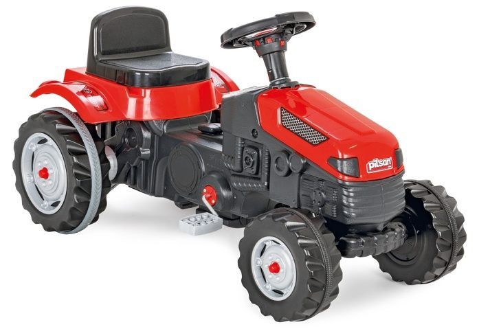Šlapací traktor červený má nastavitelnou sedačku, lehce otáčitelný volant, řetězový pohon, vzduchovou trumpetu. Nosnost 50 kg. Velikost traktoru 51×95×51 cm.