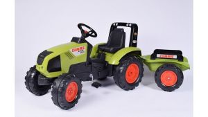 Traktor šlapací Claas Axos 330 s valníkem zelený a otočným sedadlem.